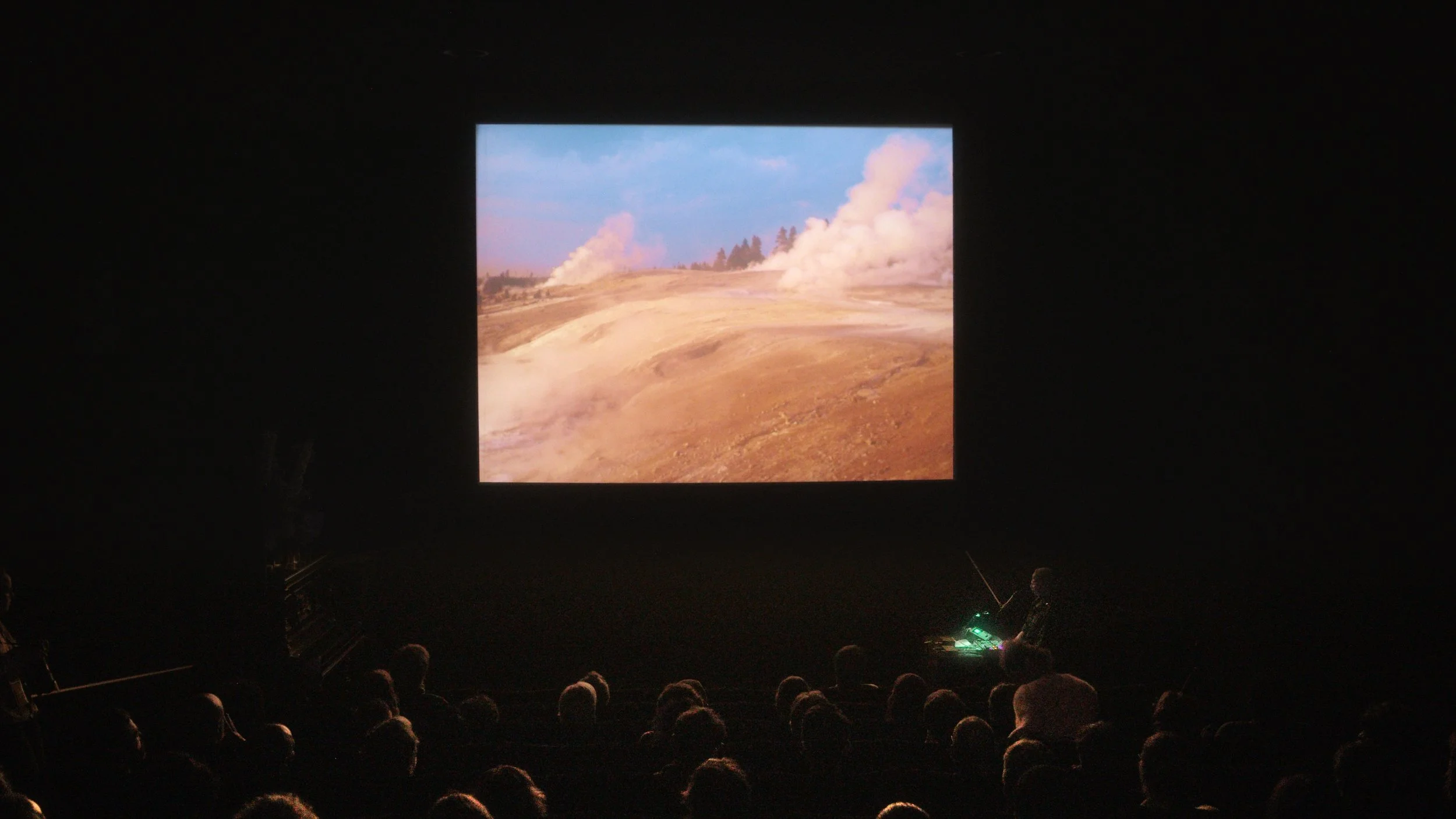 The film recordings in «gēotan» originate from two trips I made to YNP and the US West Coast in 2015 and 2017, two territories interconnected through water streams, from snowpack to the ocean. In «gēotan» I revisit this footage years later, trying to deconstruct my own gaze, a gaze obsessed in the volcanic landscape and biased by an european way of history- and nature-writing. Especially the edges of this personal archive becomes relevant in «gēotan»: tourists were unintentionally captured, slowly creeping into the frame with cameras in their hands. Water and its fluidity are a discursive motive, structurally juxtaposed in the montage: erupting geysers, water streams and (dis-)appearing white human bodies on the edge of the frame shape the imagery. In «gēotan», I assume that images of volcanic activity and flowing masses of water fluctuate in their meaning and creep into imaginaries of changing socio-ecologies.